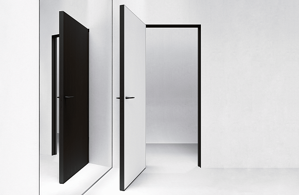 Полотна с открываем «НА и «ОТ» себя в скрытых коробах визуально одинаковы, дверь «ОТ себя» без четверти.